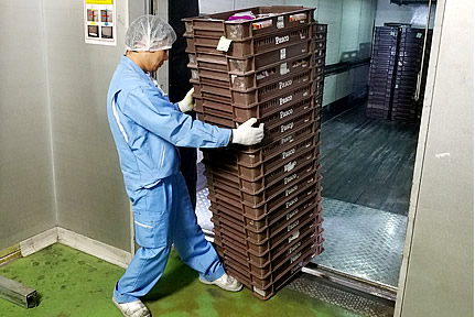 定温での配送が必要な食品(製パンなど)を温調機搭載の車両により年中庫内温度を+10℃に保ち24時間対応で配送する事が可能です。